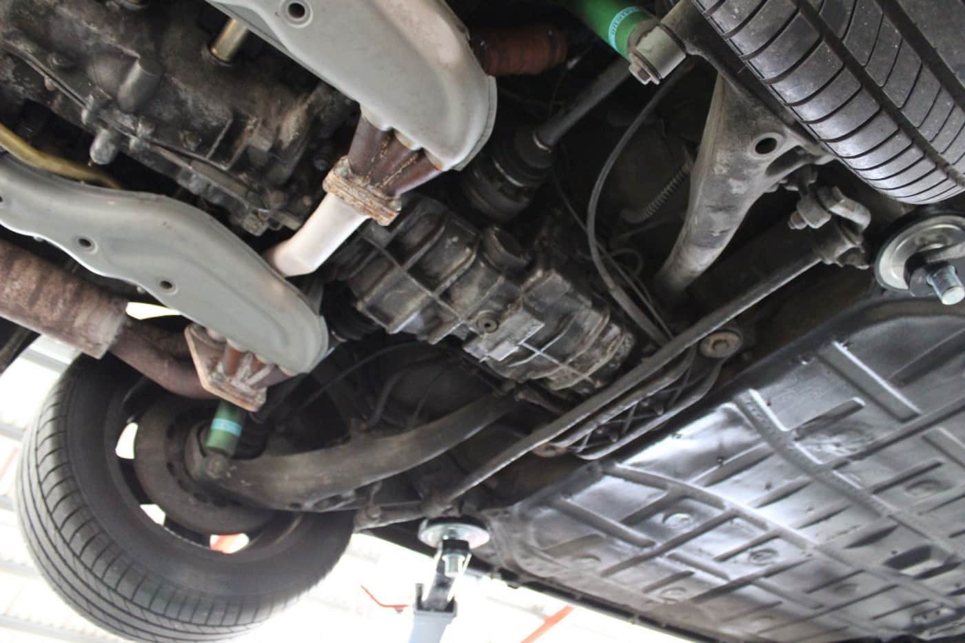 La mise sur le pont confirme que les longerons, bâti moteur, passages de roues et planchers sont en excellent état. La voiture sort de révision (Août 2017 chez un concessionnaire Porsche). Les jantes Fuchs sont neuves, tout comme les pneus.