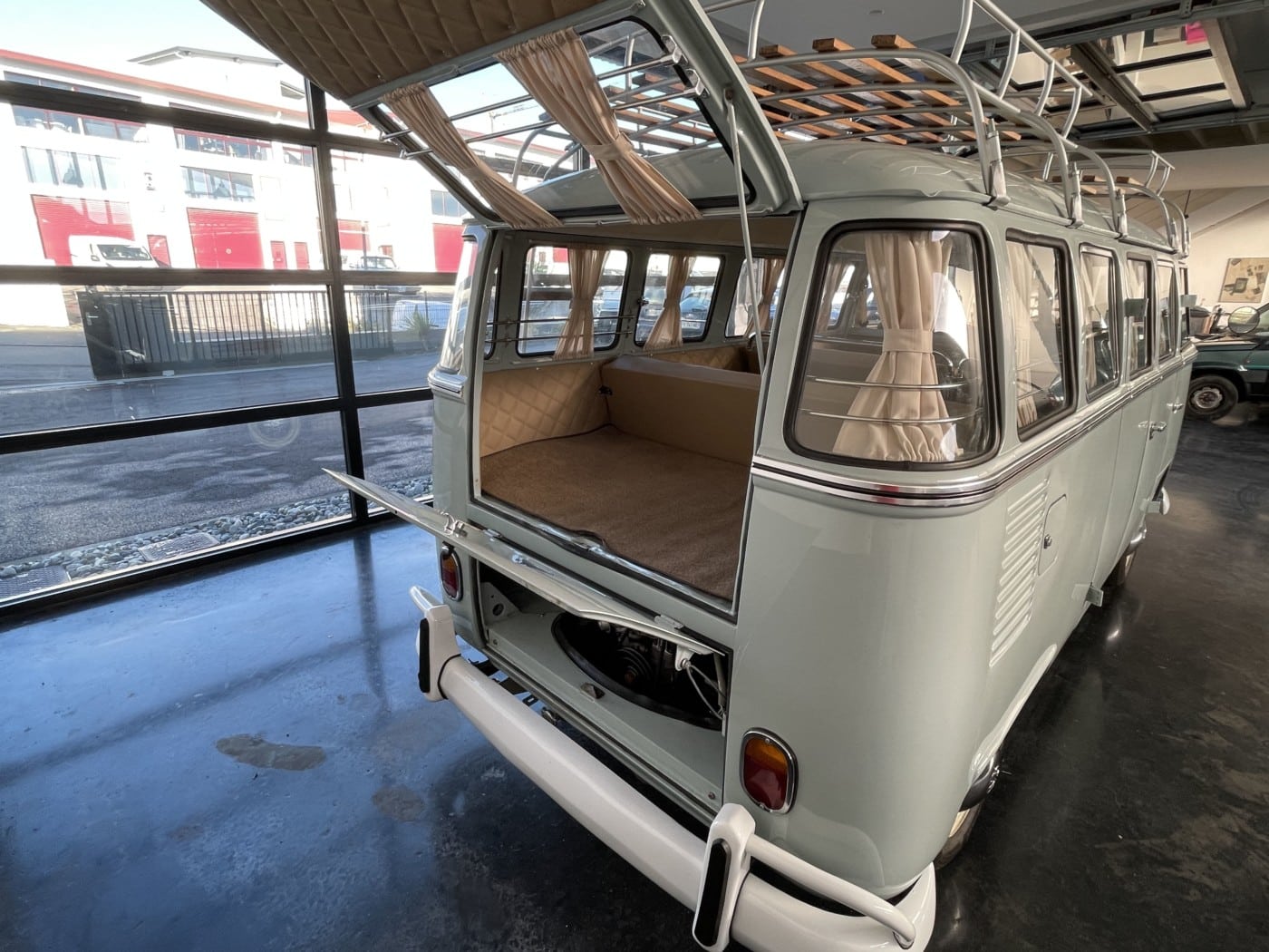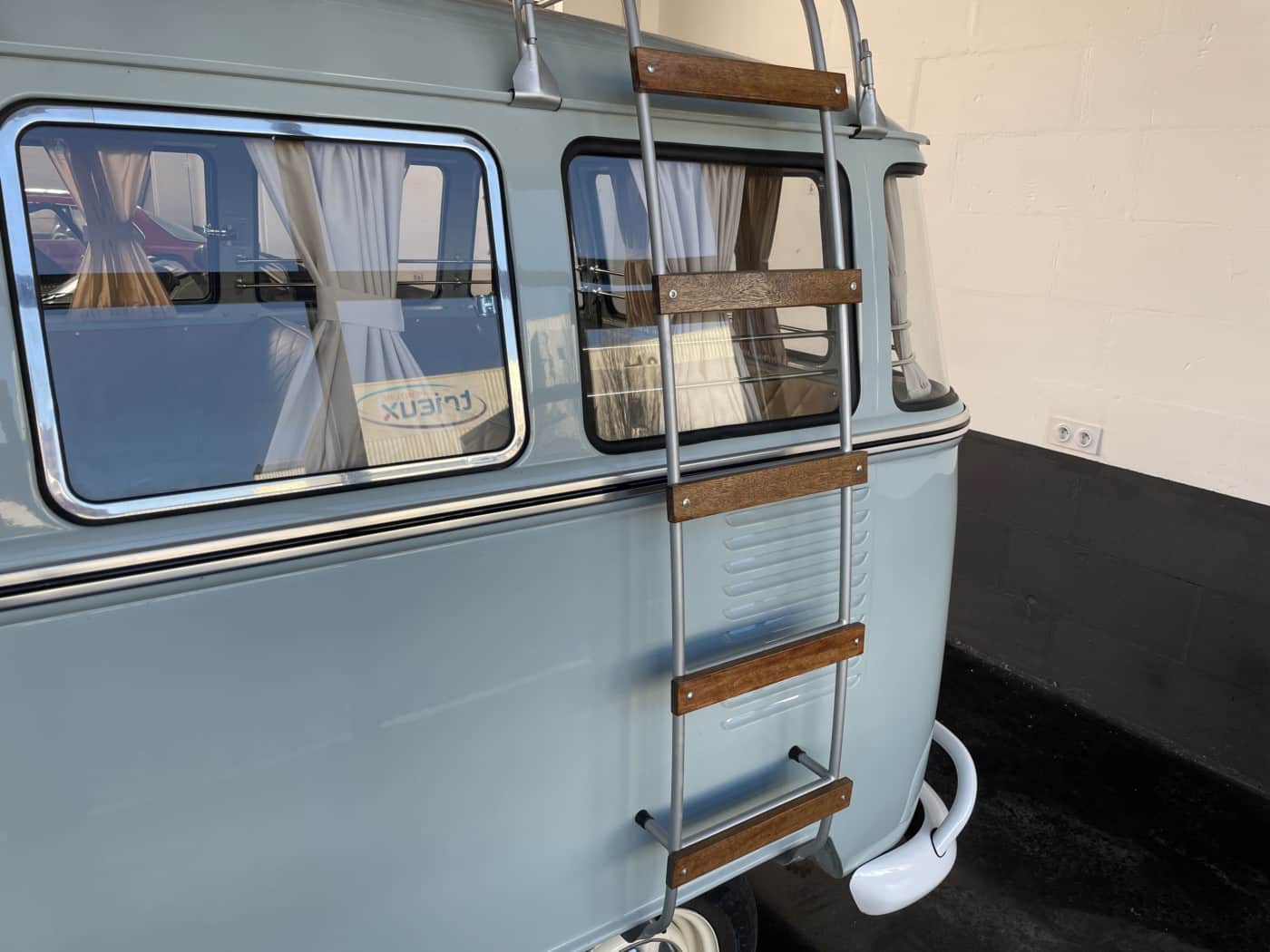 VendueCforCar présente ce Combi Brésilien, totalement restauré. Importé par un spécialiste de la marque, ce combi, dans sa version 9 places (carte grise 9 places également), possède une sellerie « Luxe » absolument superbe. La galerie de toit, option d’époque, permet de partir à l’autre bout du monde… ou sur la plage la plus proche avec les planches sur le toit !